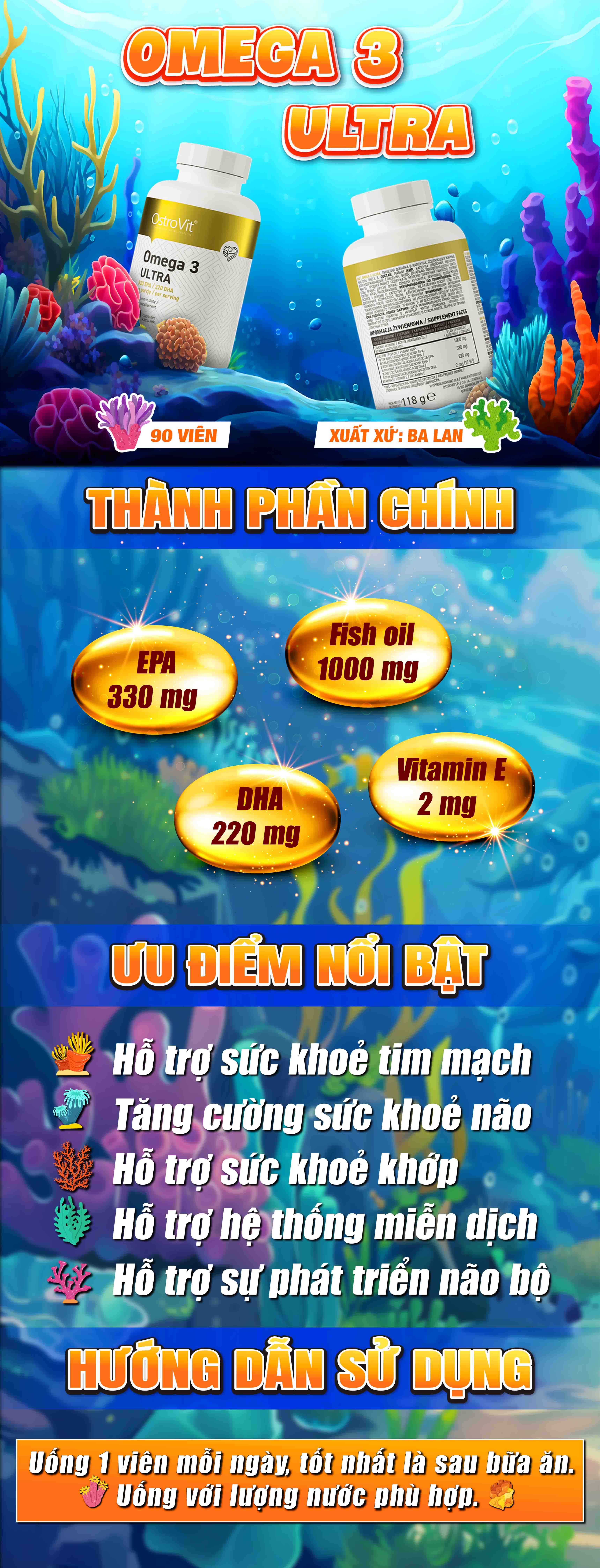 - 1000 mg dầu cá trong mỗi khẩu phần